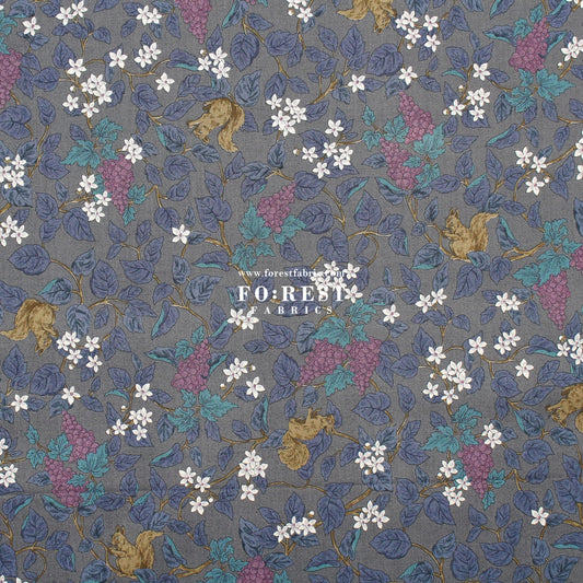 cotton - Flowers Squirrel fabric Charcoal Black