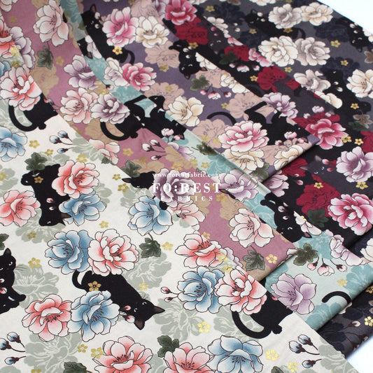 cotton - Sakura Blooms cat fabric Black