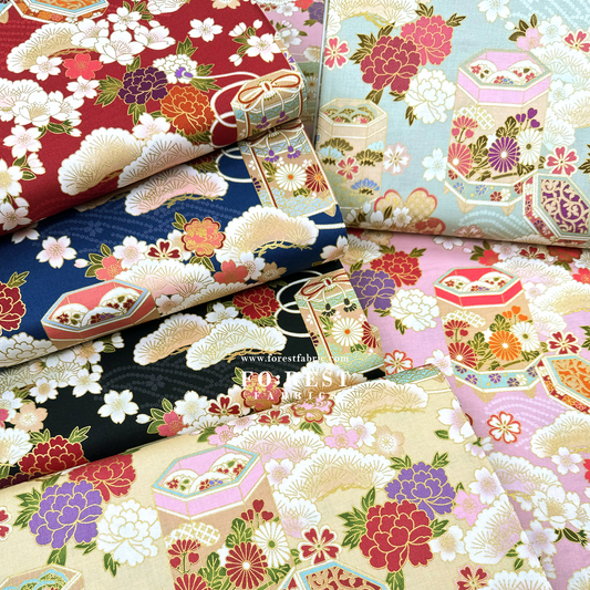 Sold out 售罄cotton - Cherry blossom Gift Box fabric Navy