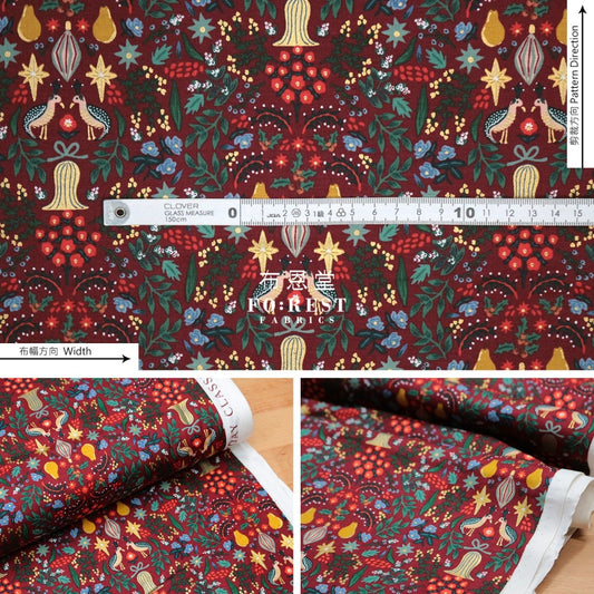 cotton - Garden Party Wild RoseFlower fabric Wine