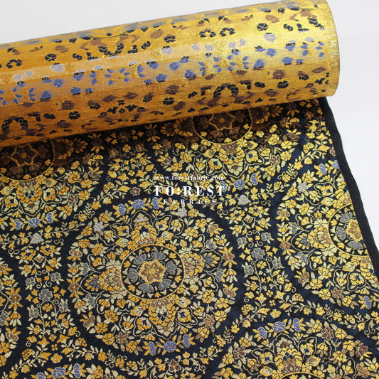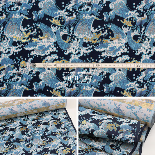 Gold Brocade - The Great Wave沖浪裏 fabric Navy