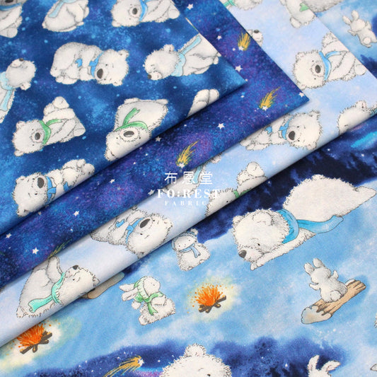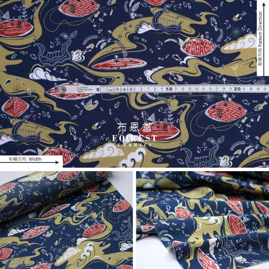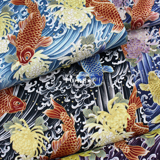 cotton - Koi Fuji mountain with metallic fabric Navy