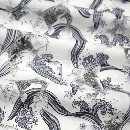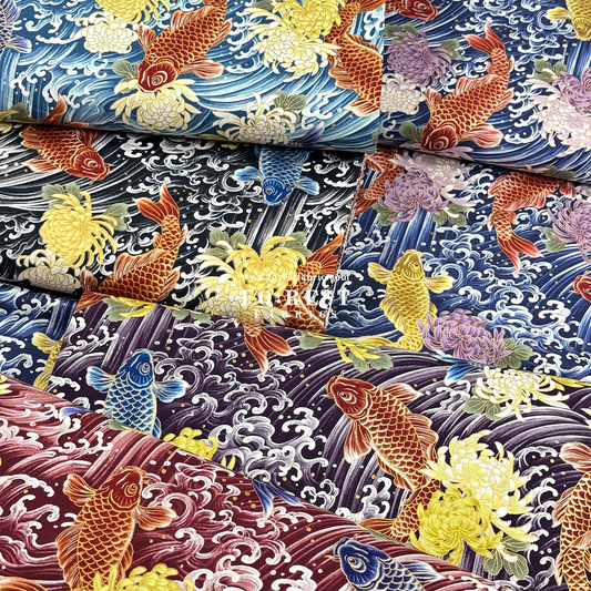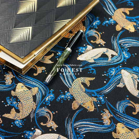 Gold Brocade - Koi鯉 fabric L.BLUE