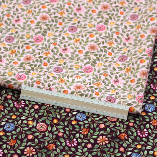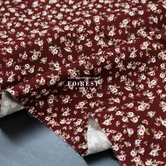 Corduroy - Little Rose Flower fabric Wine 燈芯絨
