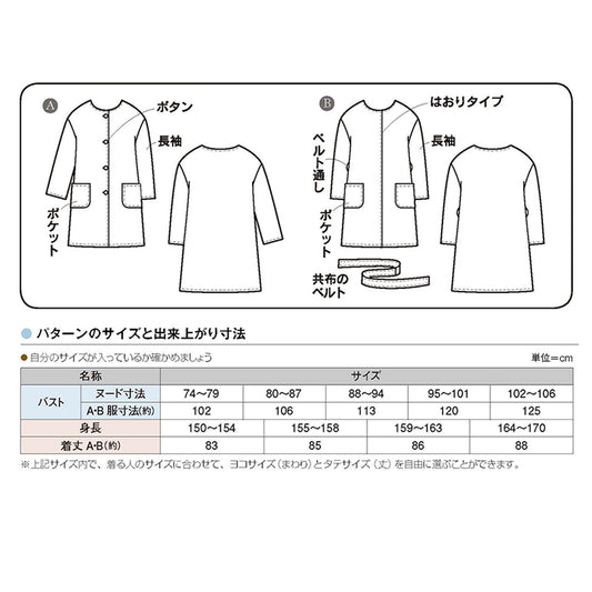 No-Collar Light Coat Jacket Ladies | Paper pattern