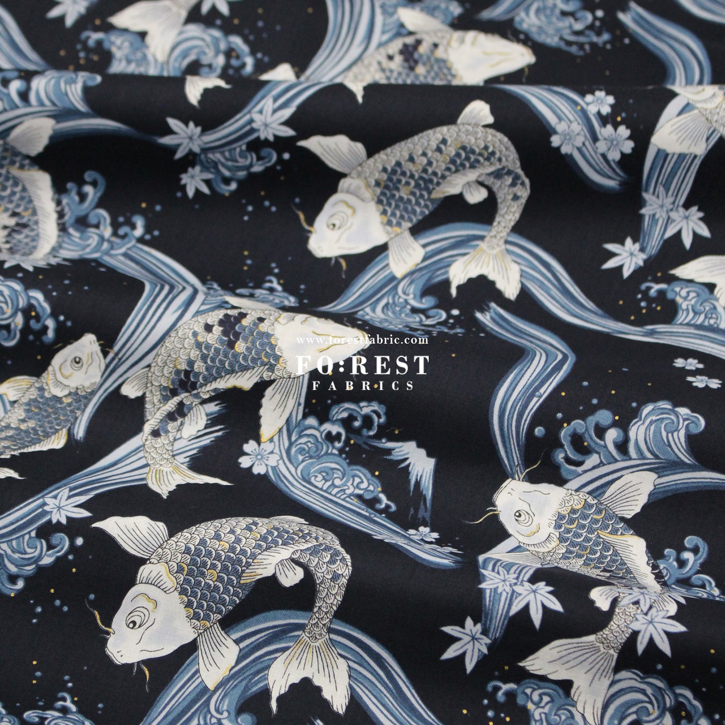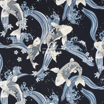 cotton - Koi Fuji mountain with metallic fabric Navy