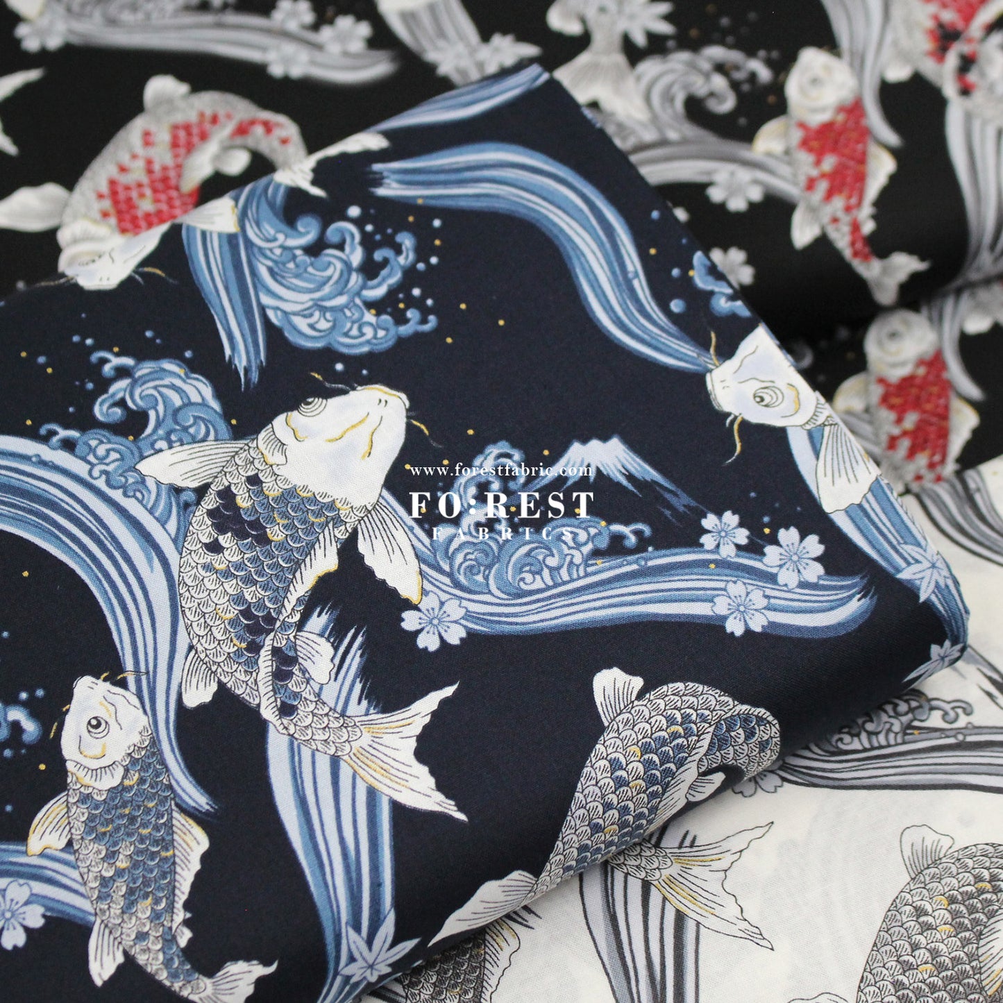.全棉布料 日本布料 錦鯉 富士山 日式 熨金