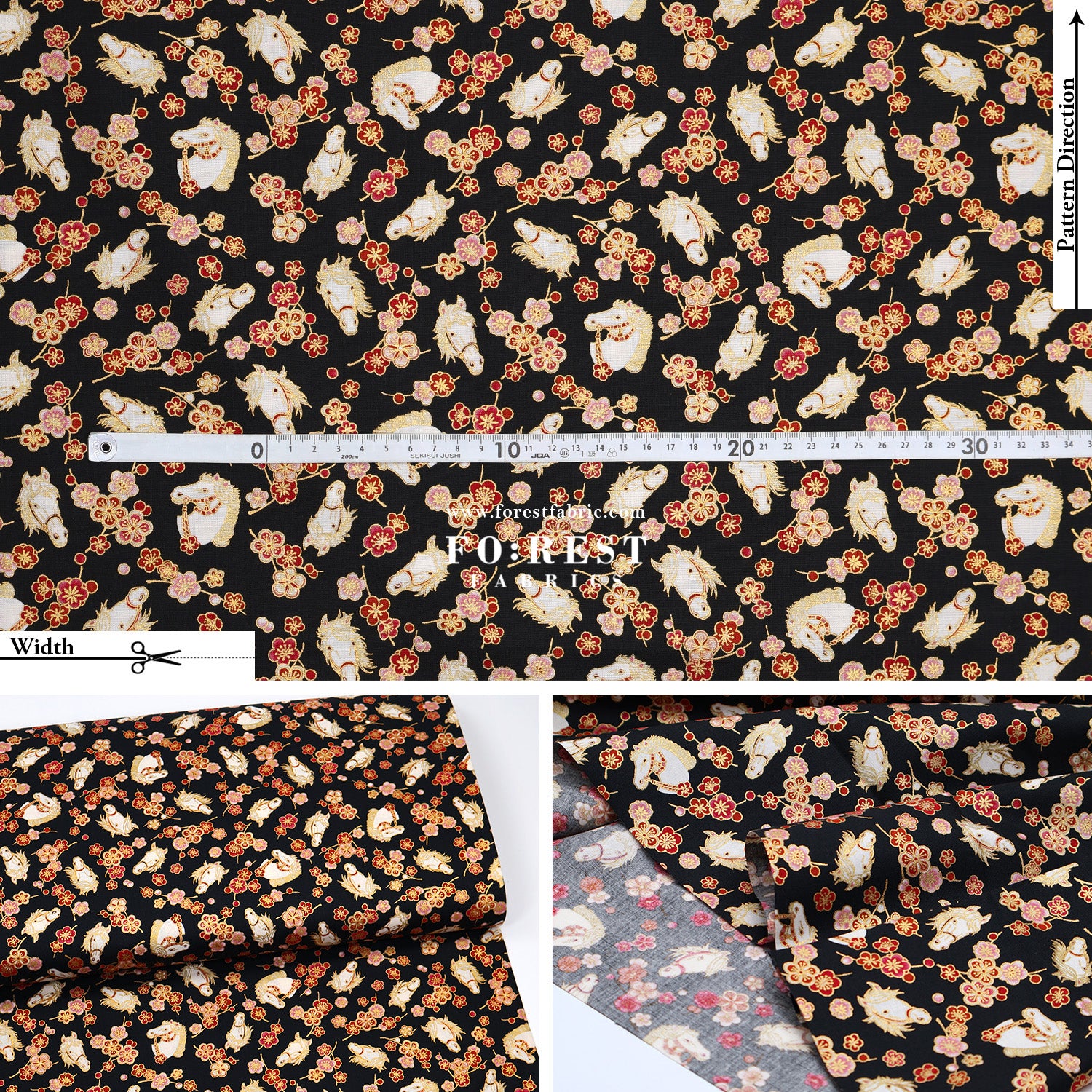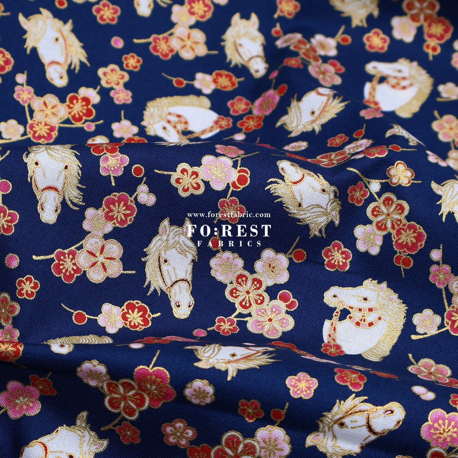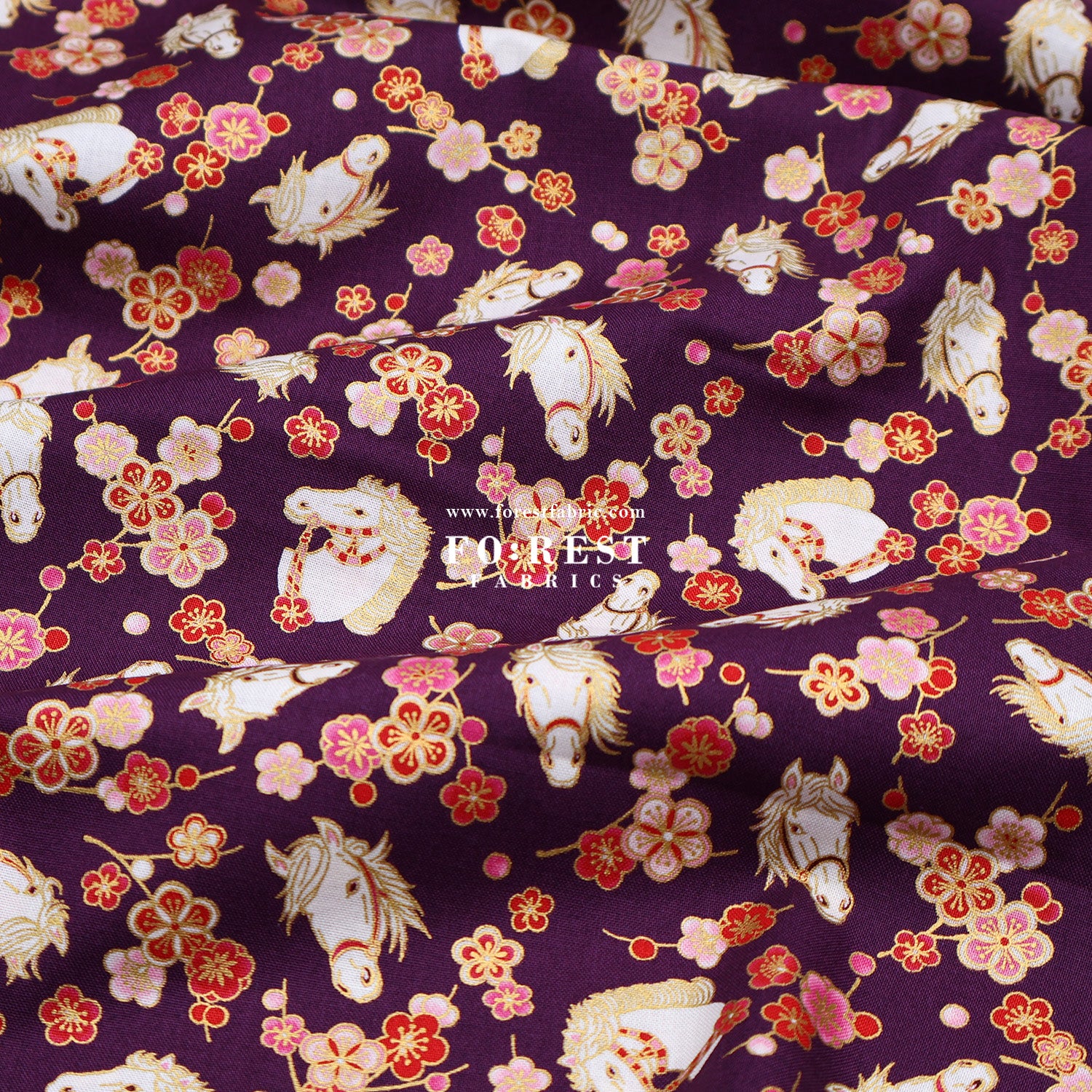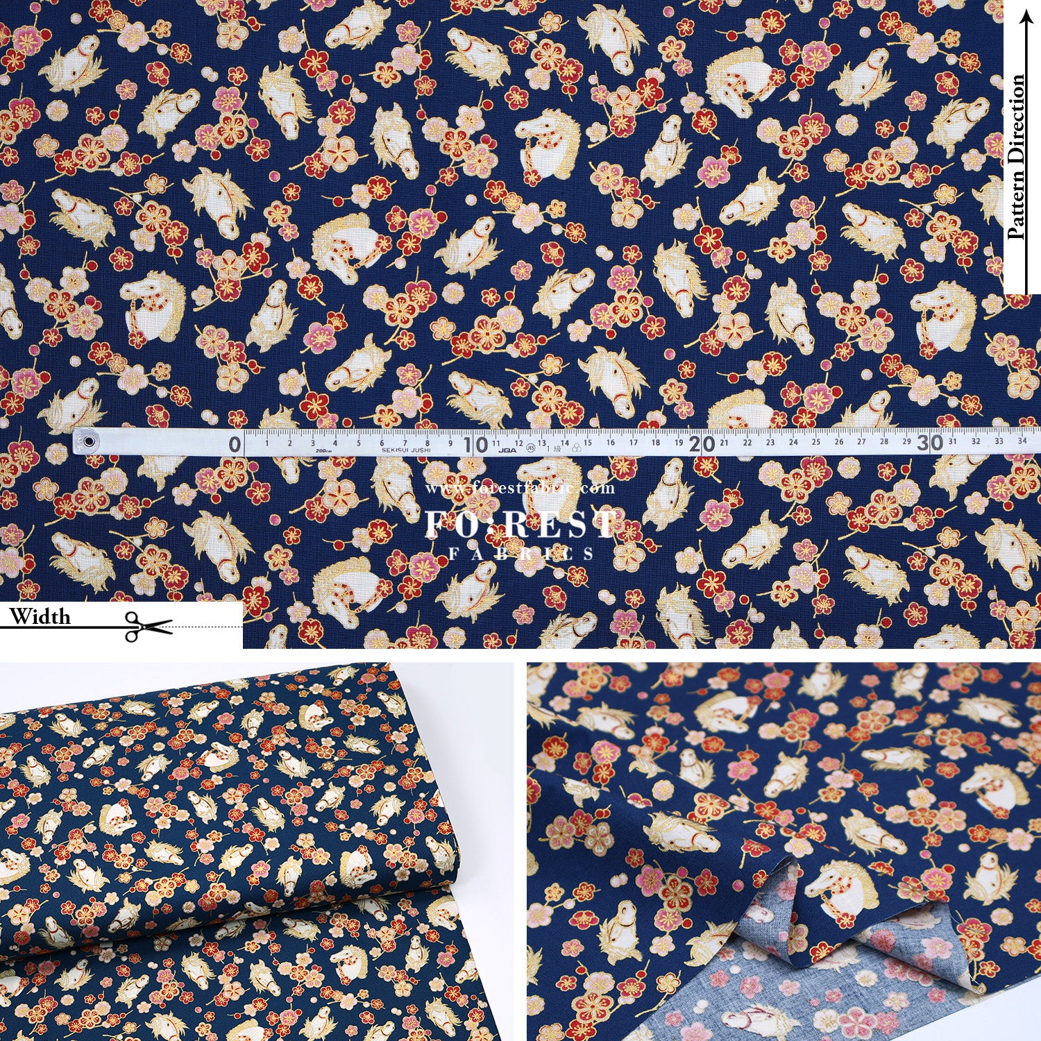 .全棉布料 日本布料 和風百華繚蘭 熨金 馬 梅花
