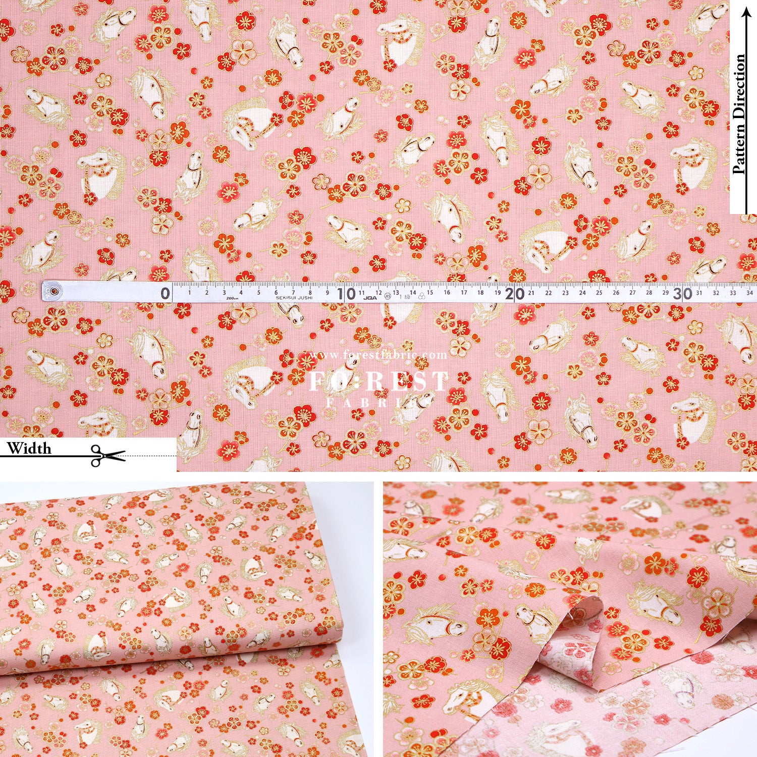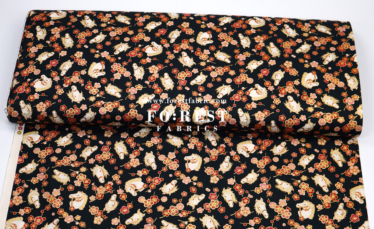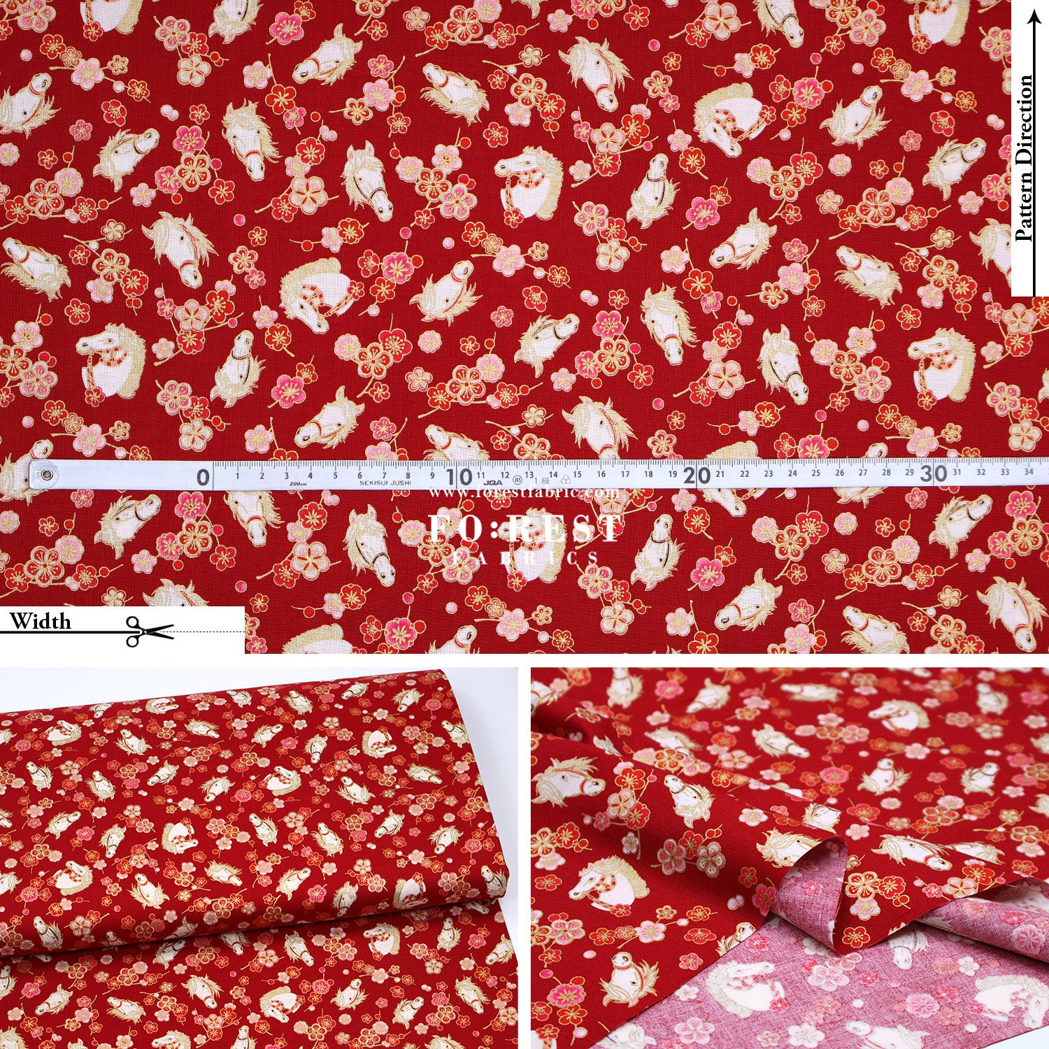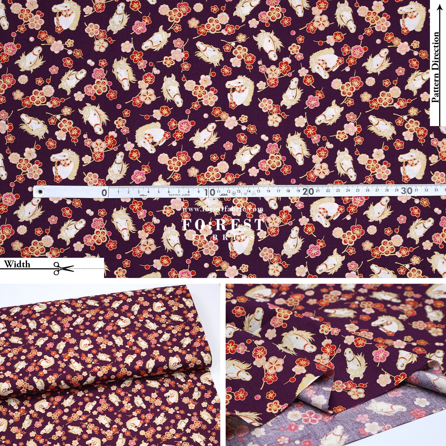 .全棉布料 日本布料 和風百華繚蘭 熨金 馬 梅花