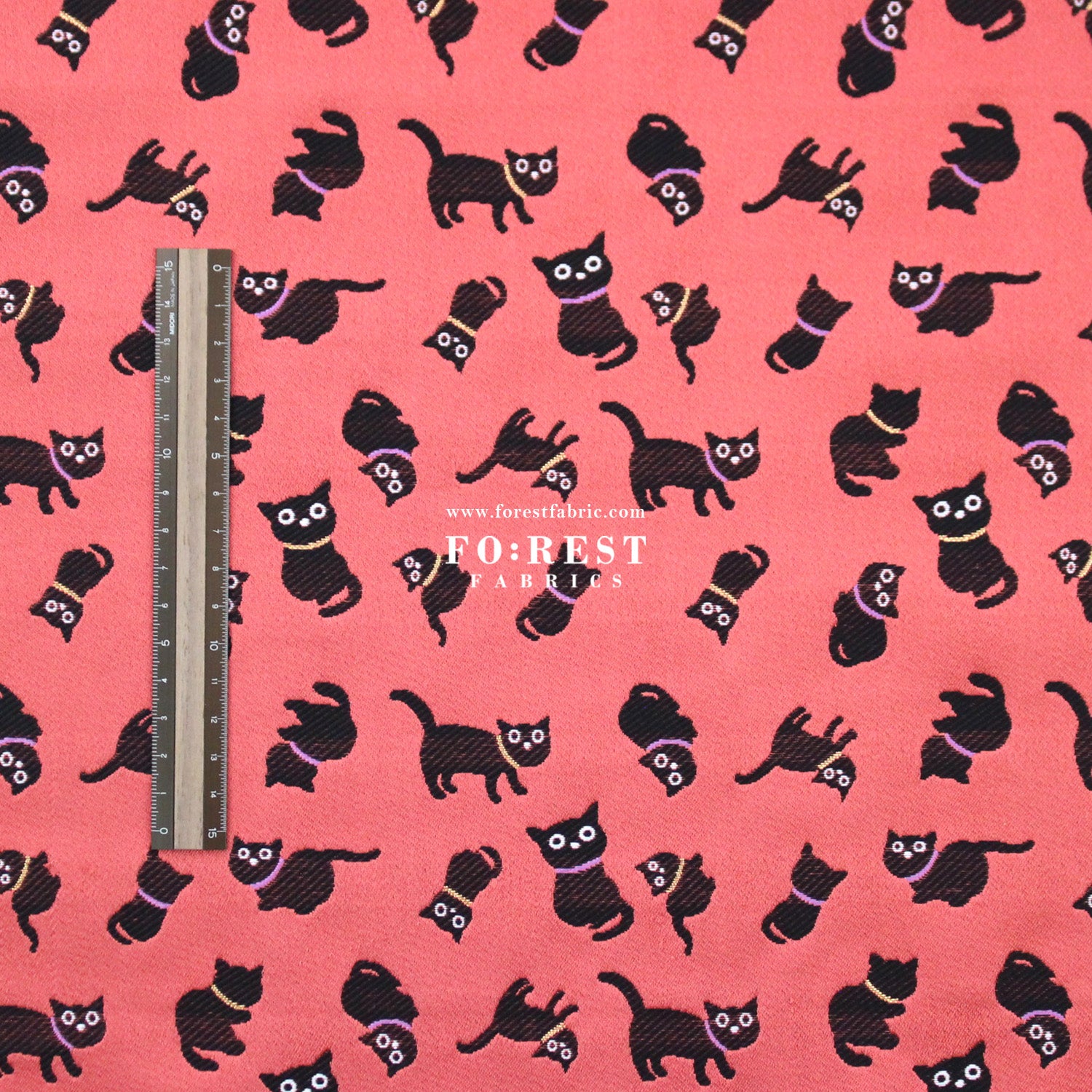 Gold Brocade - cats fabric Lightred