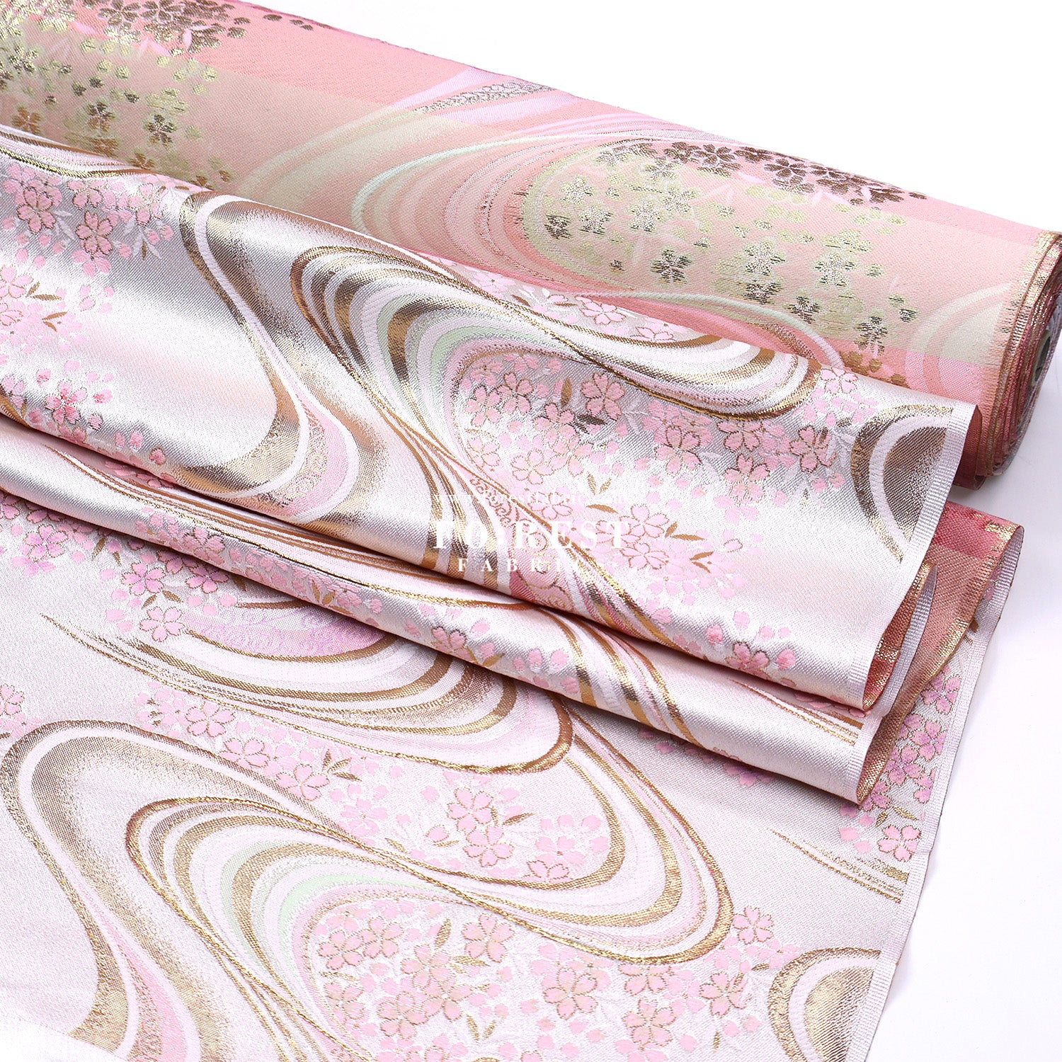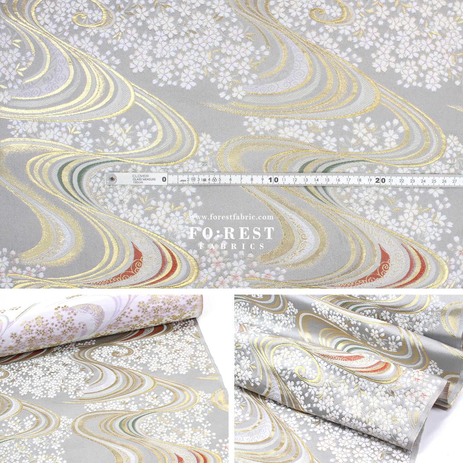 Gold Brocade - Sakura river Milky Gray fabric