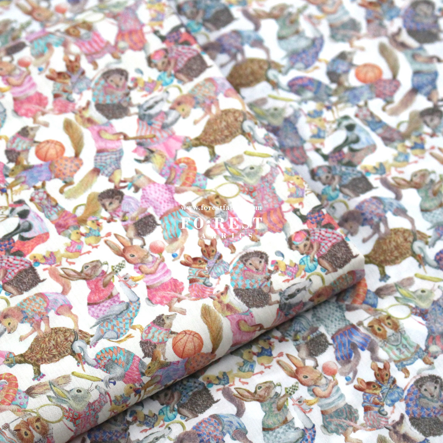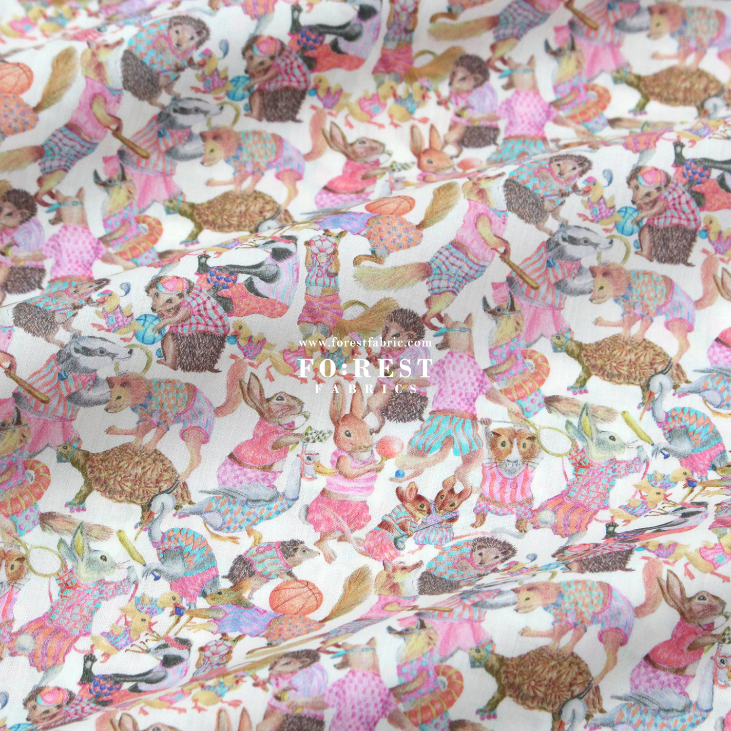 Hullabaloo 在大型比賽開始前看到一群快樂的動物在練習。 從球棒和球到呼吸管和球拍,Hullabaloo 是一種充滿隱藏細節的印花——每隻動物都是在 Liberty Fabrics 工作室用彩色鉛筆精心繪製的。