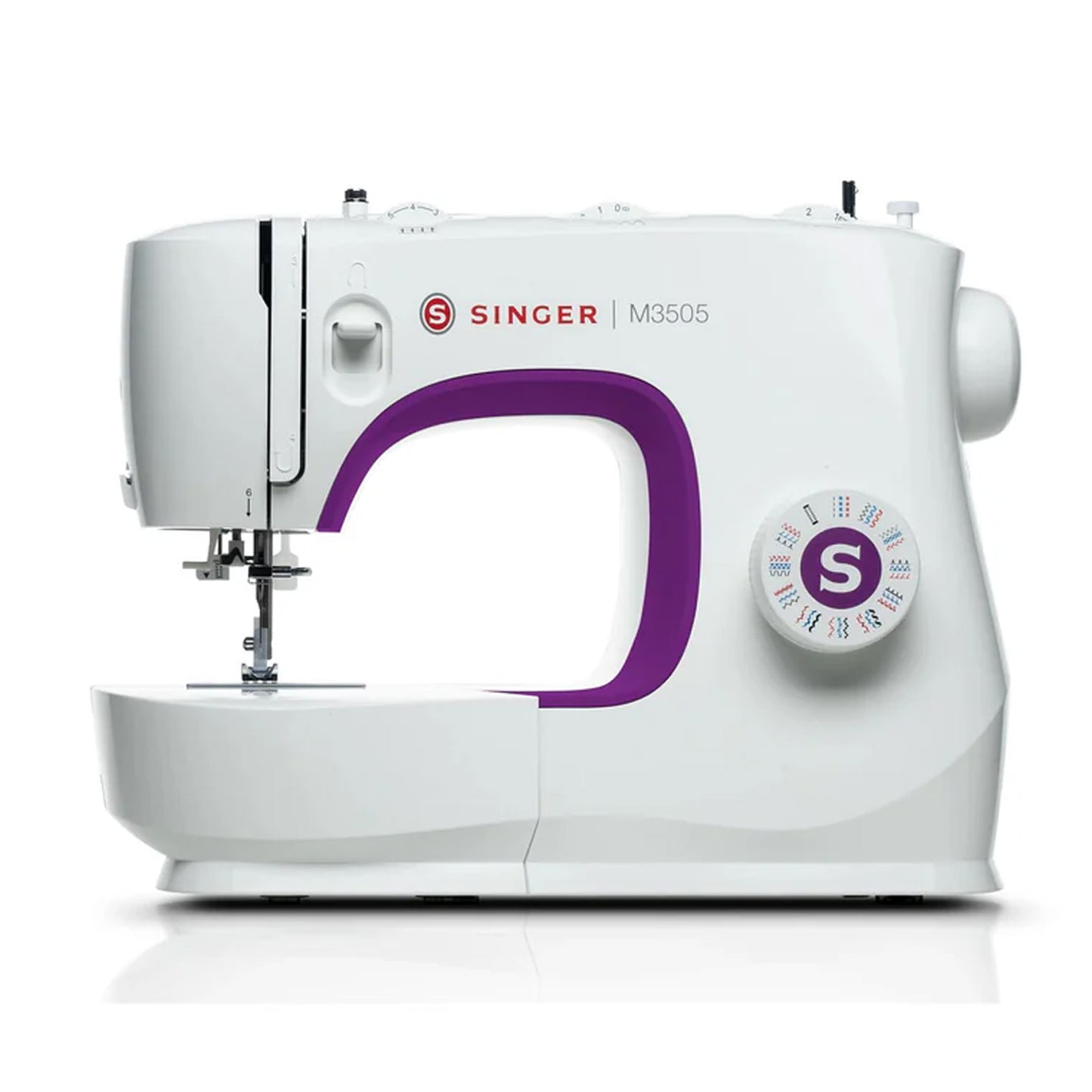 The SINGER® M3505 sewing machine is perfect for any type of sewing with a full range of stitches. For your convenience, your machine will arrive pre-threaded. Accessories included are located in the storage area at the front of your machine.